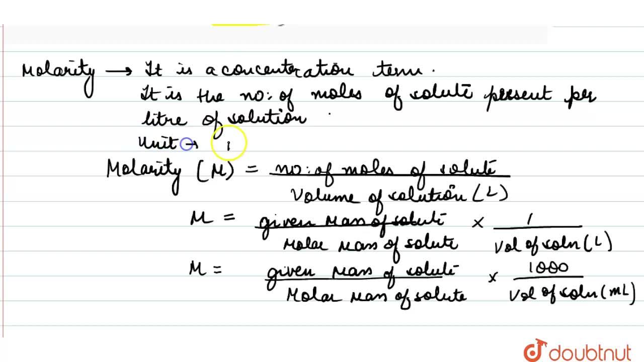 Molarity is the ratio of moles to volume of the solution molL while molality is. Molarity is measured as moles of solute per liter of solution. Dec 23 2014 Molality is expressed in moles of solute per kilogram of solvent while molarity is expressed as moles of solute per liter of solution.